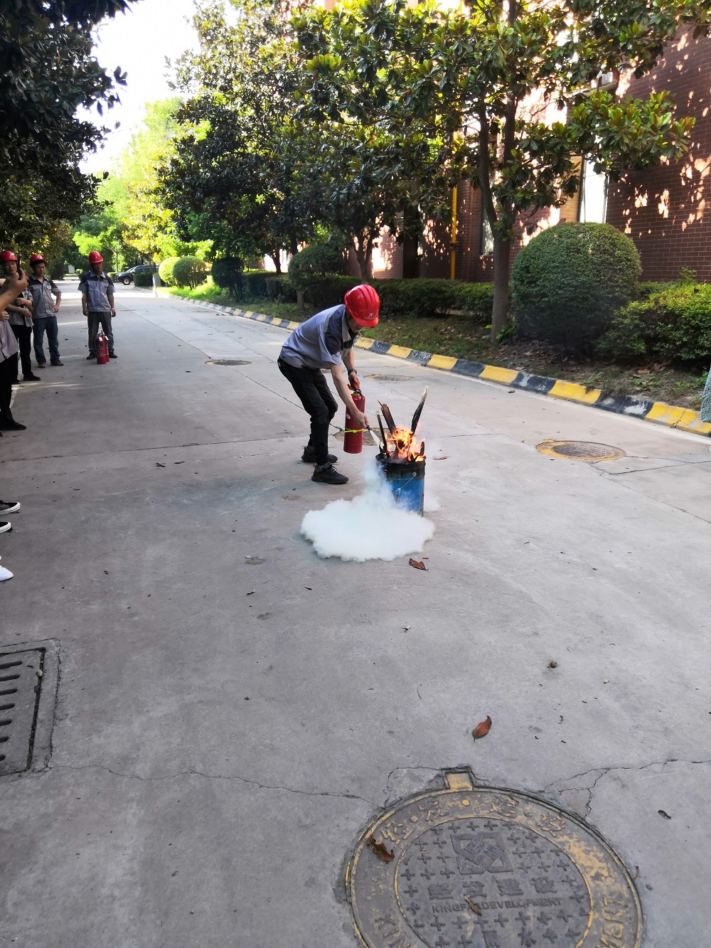 ? 為了增強員工消防意識,提高員工對于火災(zāi)的應(yīng)急撲救處置能力。下午17:20分,由演練者王晗為全體員工講解了干粉滅火器的原理、基本操作方法及注意事項。在認真聽講觀摩后,各位員工親自體驗了現(xiàn)場滅火的過程,面對熊熊燃燒的火堆,大家表現(xiàn)的十分積極勇敢,按照滅火步驟和方法將火迅速撲滅。為廠區(qū)消防安全工作打下了堅實的基礎(chǔ)。